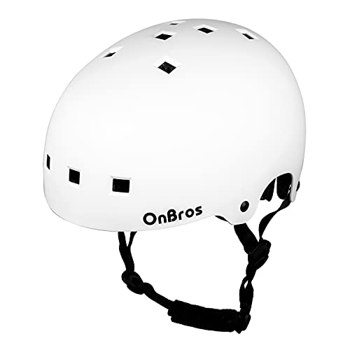 Skateboard Helmet, OnBros Bike Helmet Men and Women, Adjustable BMX Cycling Skates Scooter Helmet Adult, Road Bike Helmets for Adults, Multi-Sport Bicycle Helmet for Youth and Adults, White, L(58-61cm/22.83-24.01 inches) Item Sku:
