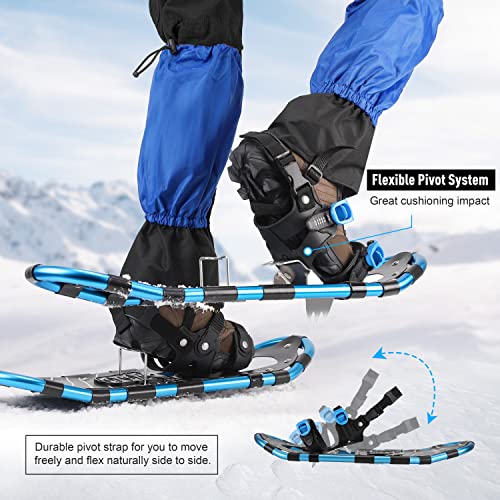 [New Upgrade] AMBIO Lightweight Snowshoes for Men Women Youth Kids, Aluminum Alloy Terrain Snow Shoes with Trekking Poles and Carrying Bag (Blue, 27 Inch)