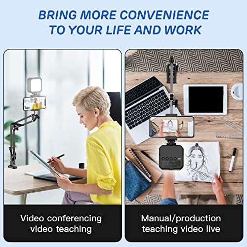 Overhead Phone Mount, Articulating Arm Cell Phone Holder with LED Light, Flexible Phone Stand for Live Streaming,Video Recording,Drawing,Cooking