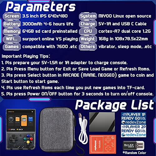 CredevZone Miyoo Mini Plus Handheld Game Console 3.5 in Portable Retro Video Games Consoles Rechargeable Hand Held Classic System Black Transparent 64GB Item Sku:
