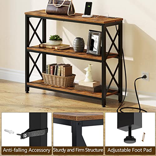 Rolanstar Console Table with Power Outlets, 39” Sofa Table with Storage Shelf and Charging Station, 3 Tier Entryway Table Metal Frame Behind Sofa Couch Hallway Entrance for Living Room, Rustic Brown, 39.4" Item Sku: