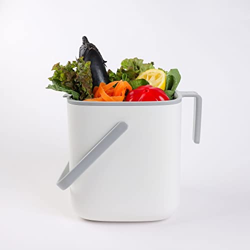 BLUE GINKGO Kitchen Compost Bin - Easy Clean Food Waste Bin for Kitchen with Handles | Countertop Compost Bin Kitchen Food Scrap Pail Bucket | Made in Korea (0.69 gal / 2.6L) - White Item Sku: