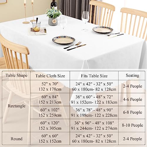 Smiry Vinyl Table Cloth Rectangular, 60 x 84 Inch Waterproof Stain Resistant Oilproof Table Protector, Heavy Duty Tablecloth, Wipeable and Washable Table Cover for Dining and Party, White